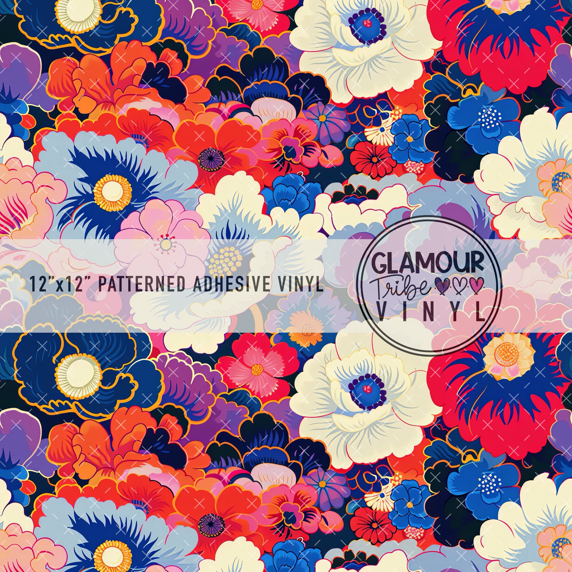 12"x12" sheet fully opaque pattern printed on white adhesive vinyl. See our available vinyl type options below, along with their descriptions. Usable, printed area of the print is a full 12"x12".