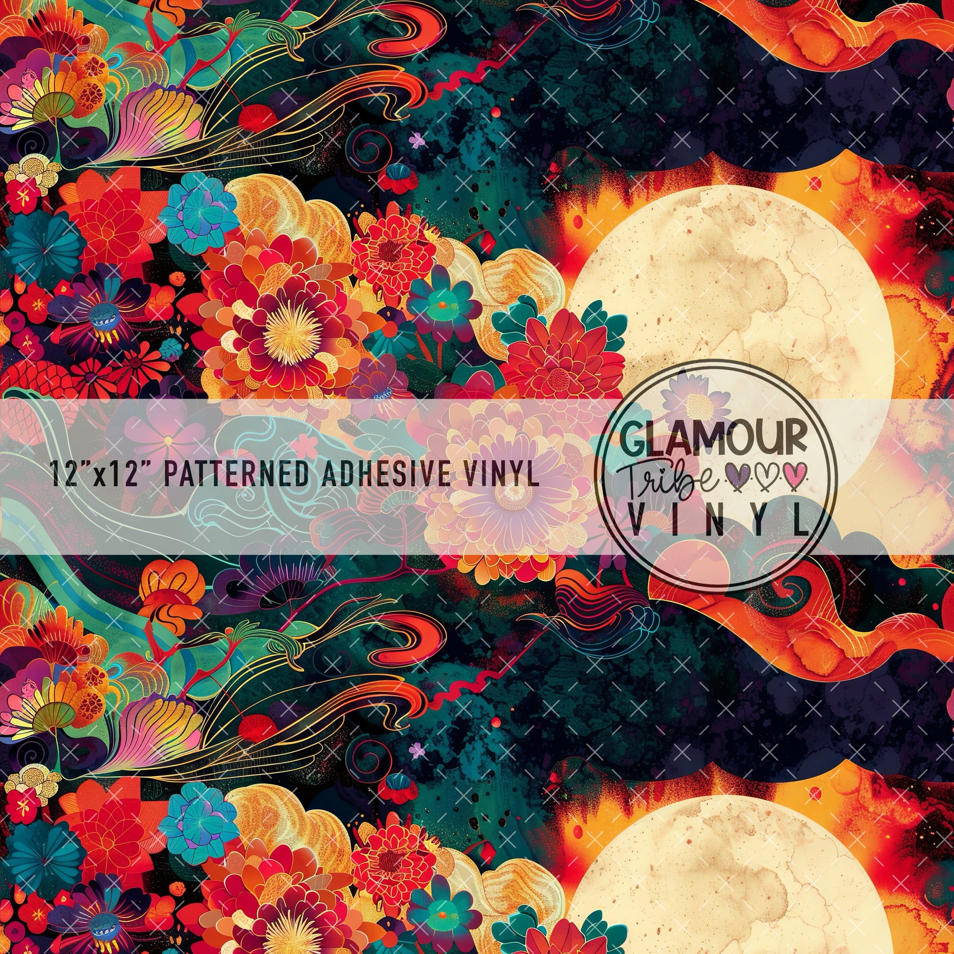 12"x12" sheet fully opaque pattern printed on white adhesive vinyl. See our available vinyl type options below, along with their descriptions. Usable, printed area of the print is a full 12"x12".