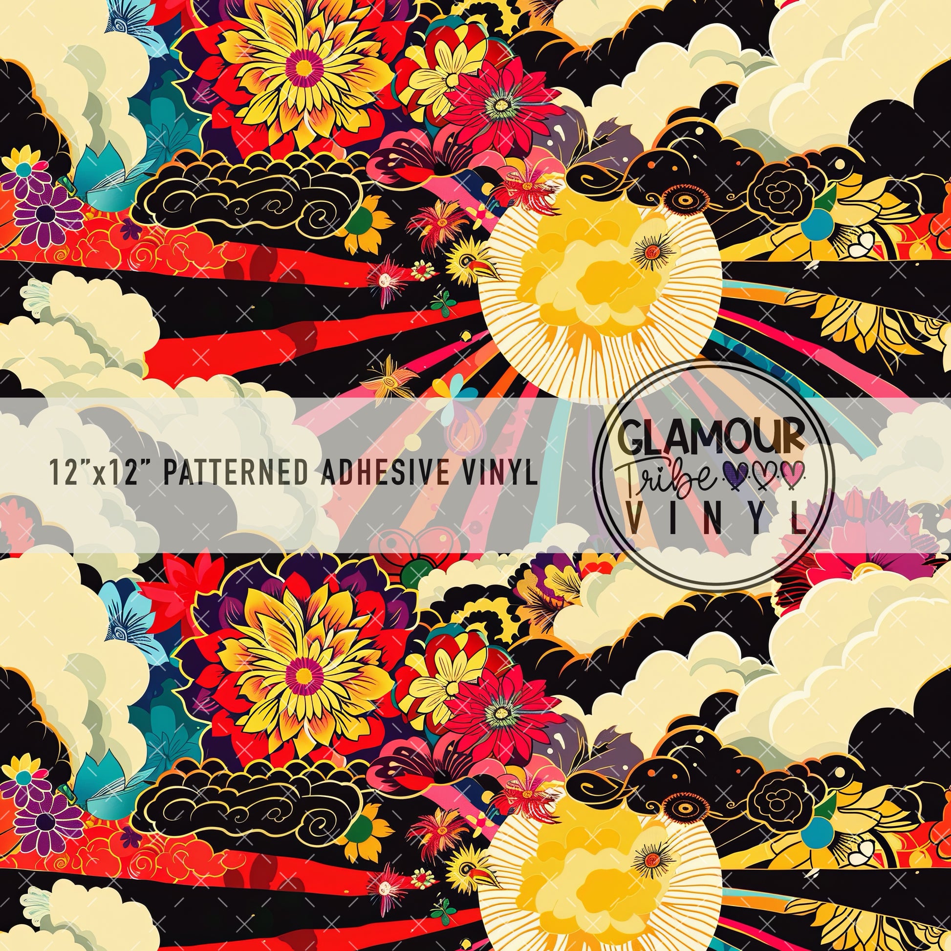 12"x12" sheet fully opaque pattern printed on white adhesive vinyl. See our available vinyl type options below, along with their descriptions. Usable, printed area of the print is a full 12"x12".