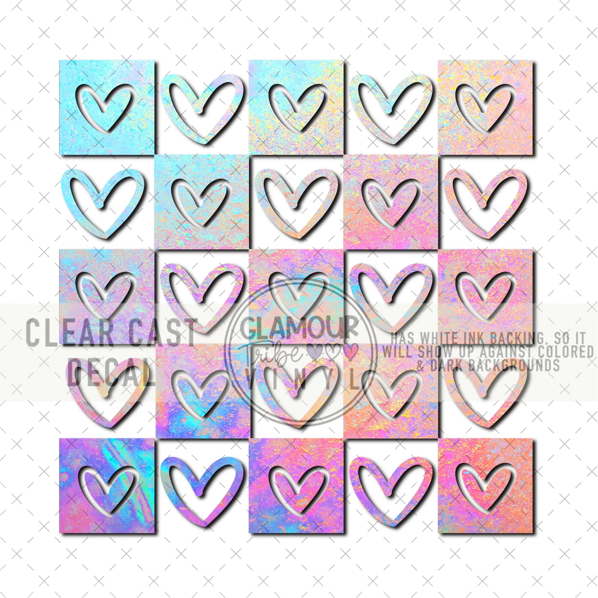 Clear Cast Decals are printed on clear vinyl, with a white ink base layer underneath the design, so that they can be used on any color background, even dark backgrounds.