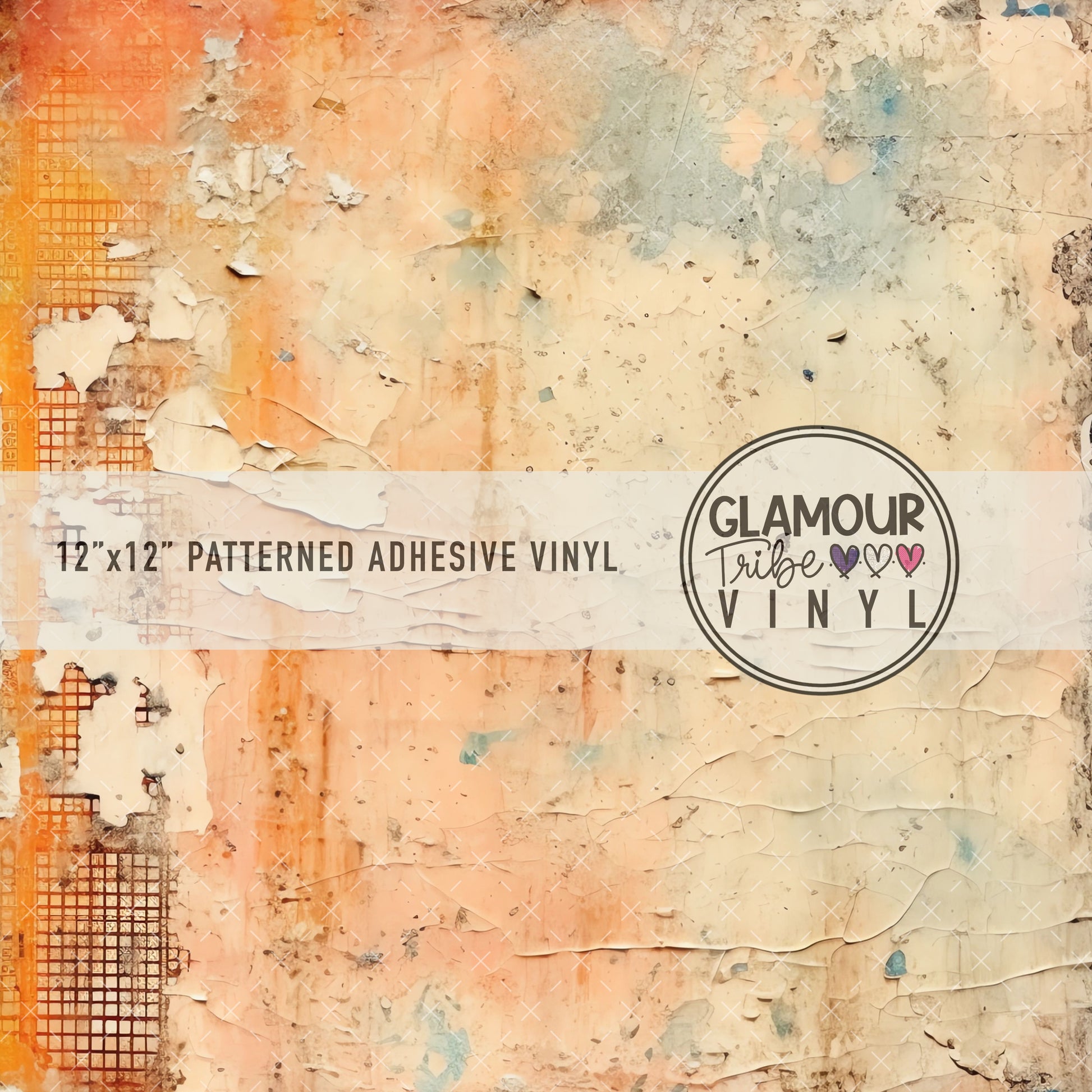 12"x12" sheet fully opaque pattern printed on white adhesive vinyl. See our available vinyl type options below, along with their descriptions. Usable, printed area of the print is a full 12"x12".