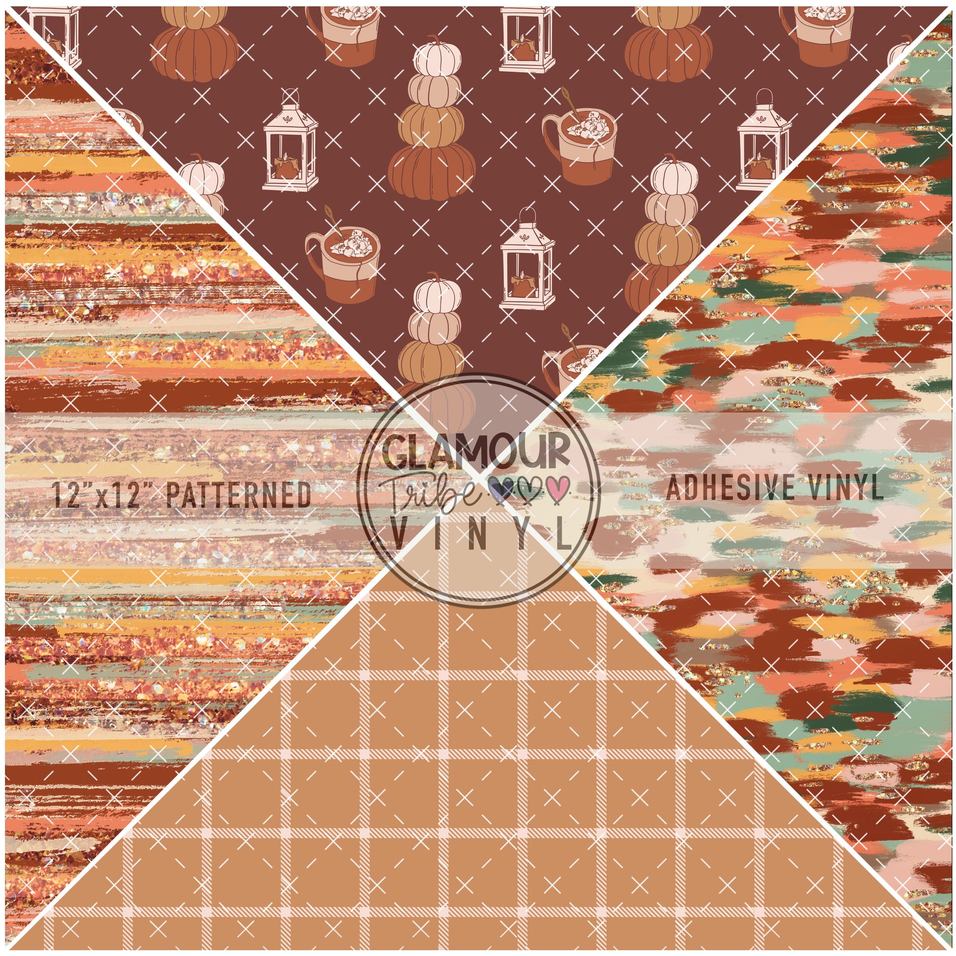 12"x12" sheet fully opaque patterns printed on white adhesive vinyl. Four coordinating patterns for v-split tumbler designs. See our available vinyl type options below, along with their descriptions. Usable, printed area of the print is a full 12"x12".