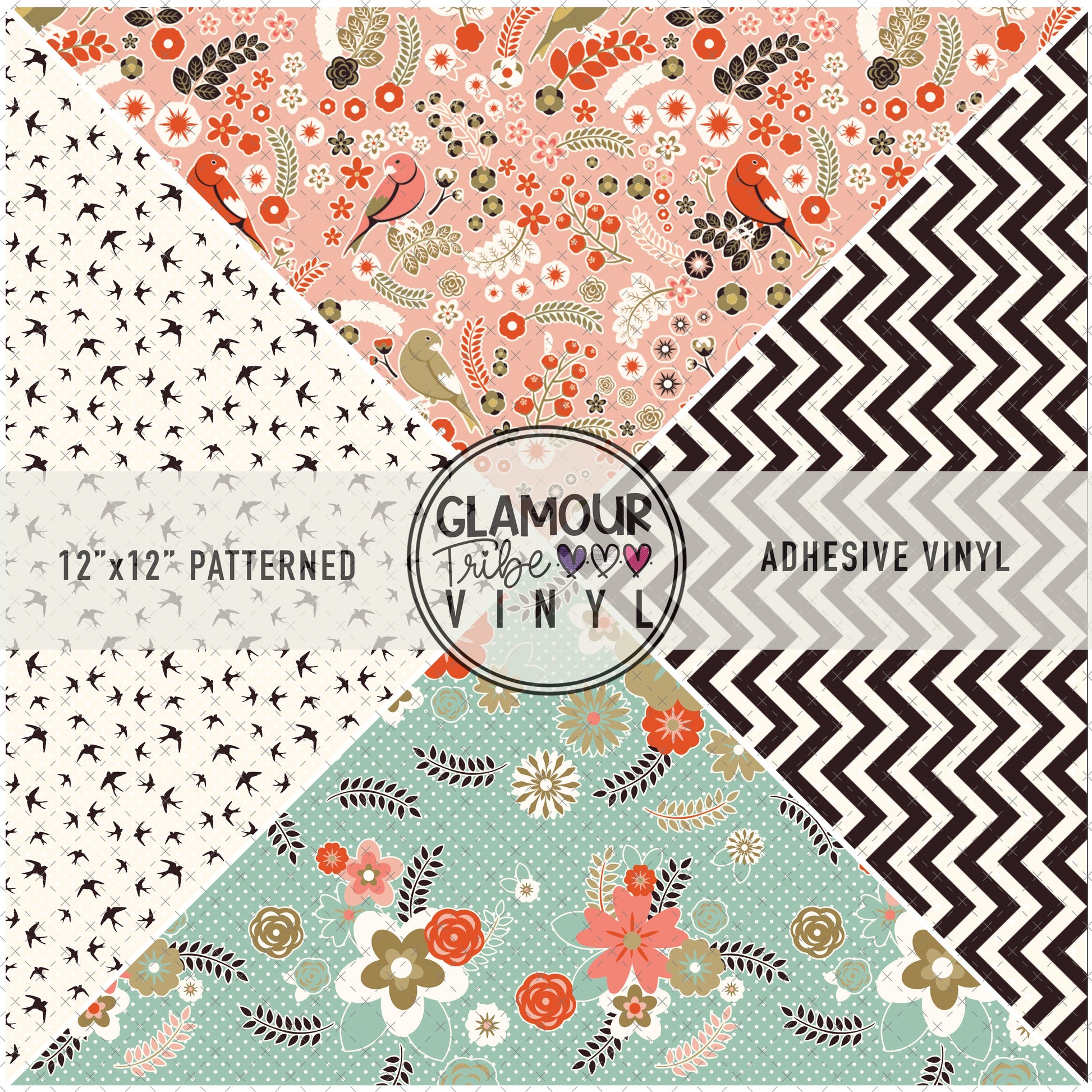 12"x12" sheet fully opaque pattern printed on white adhesive vinyl. See our available vinyl type options below, along with their descriptions. Usable, printed area of the print is a full 12"x12".