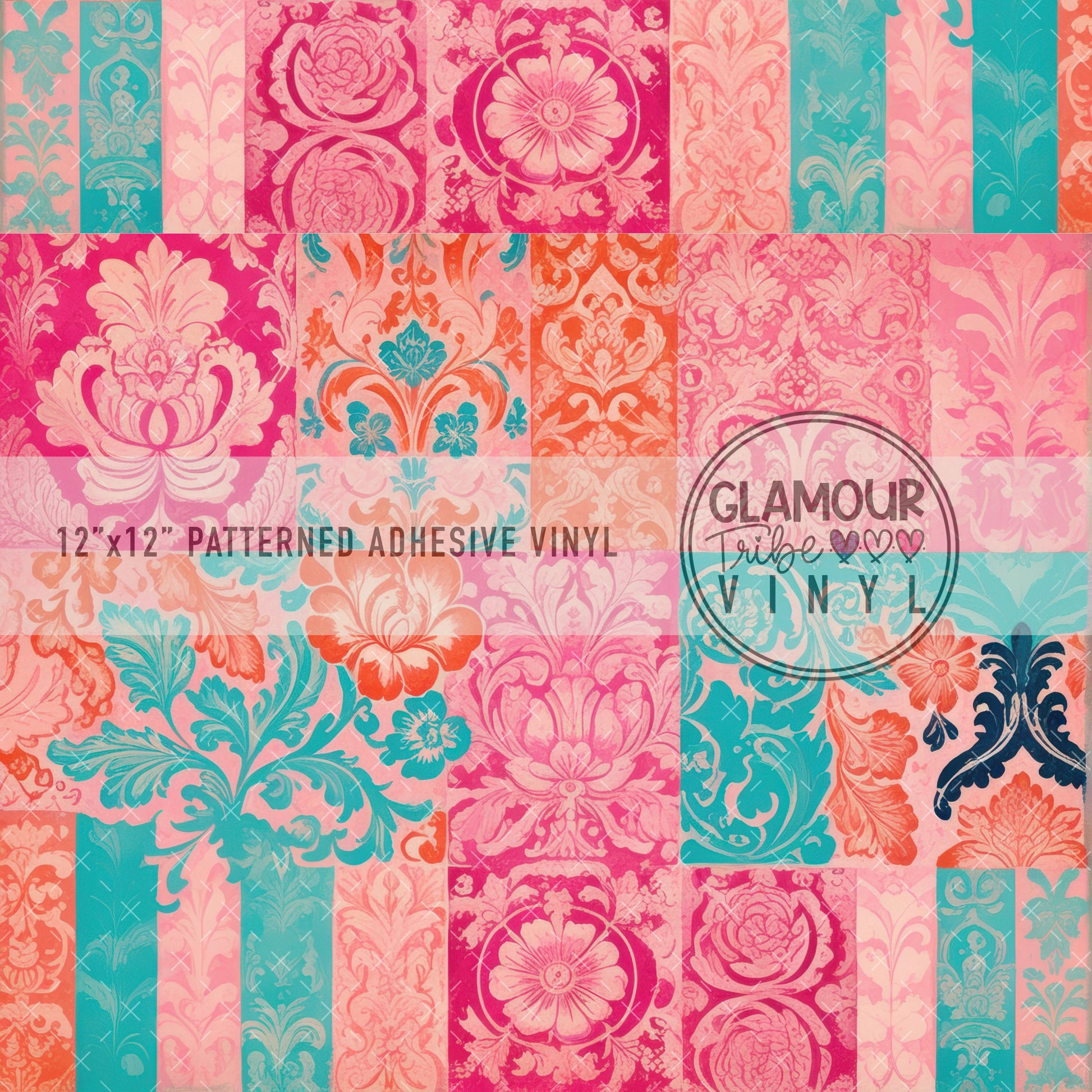 12"x12" sheet fully opaque pattern printed on white adhesive vinyl. See our available vinyl type options below, along with their descriptions. Usable, printed area of the print is a full 12"x12".