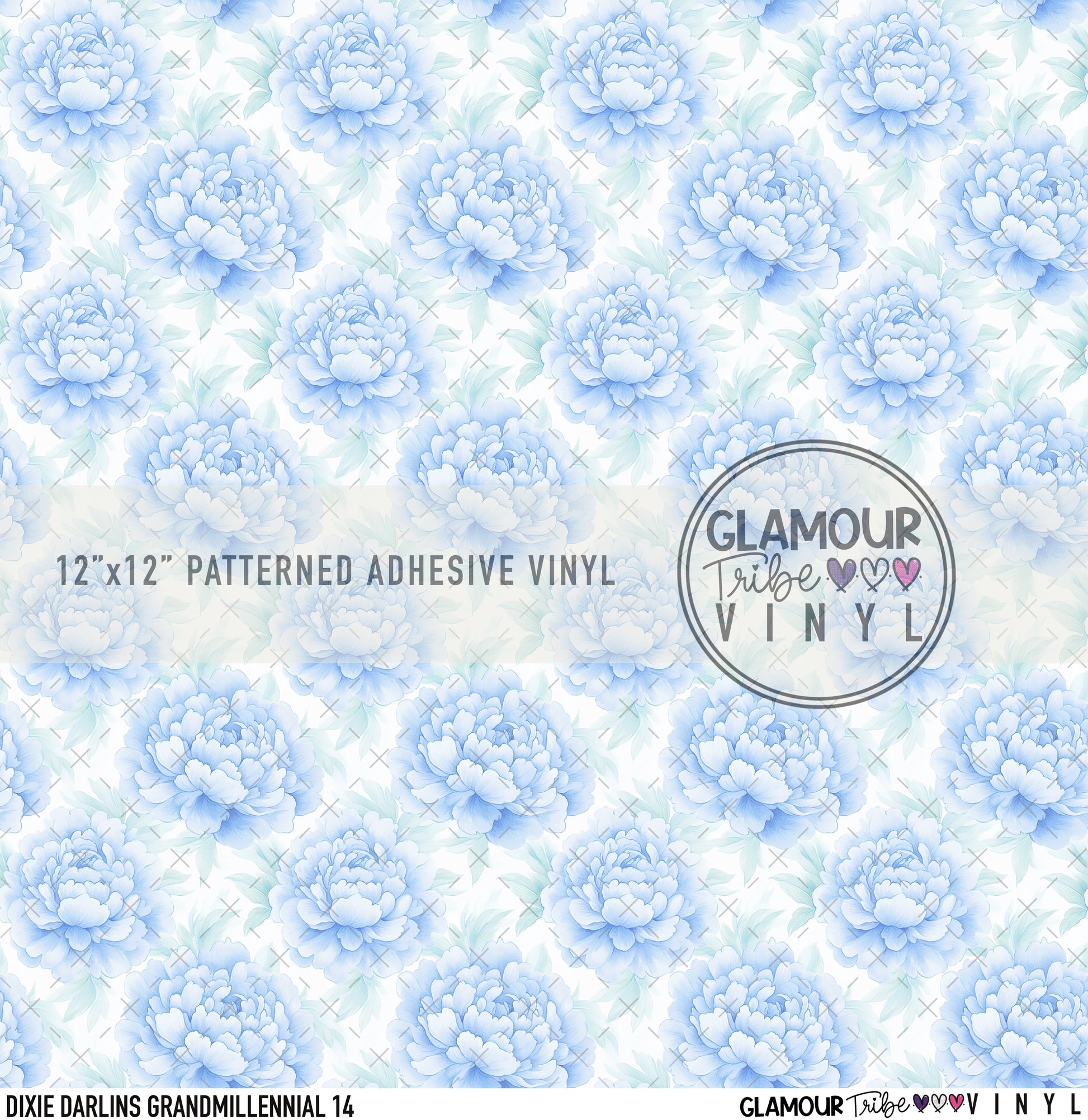 12"x12" sheet fully opaque pattern printed on white adhesive vinyl. See our available vinyl type options below, along with their descriptions. Usable, printed area of the print is a full 12"x12".