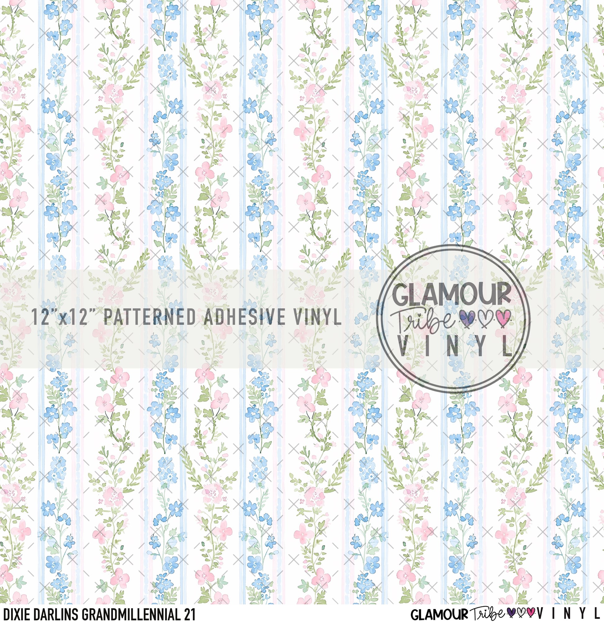 12"x12" sheet fully opaque pattern printed on white adhesive vinyl. See our available vinyl type options below, along with their descriptions. Usable, printed area of the print is a full 12"x12".