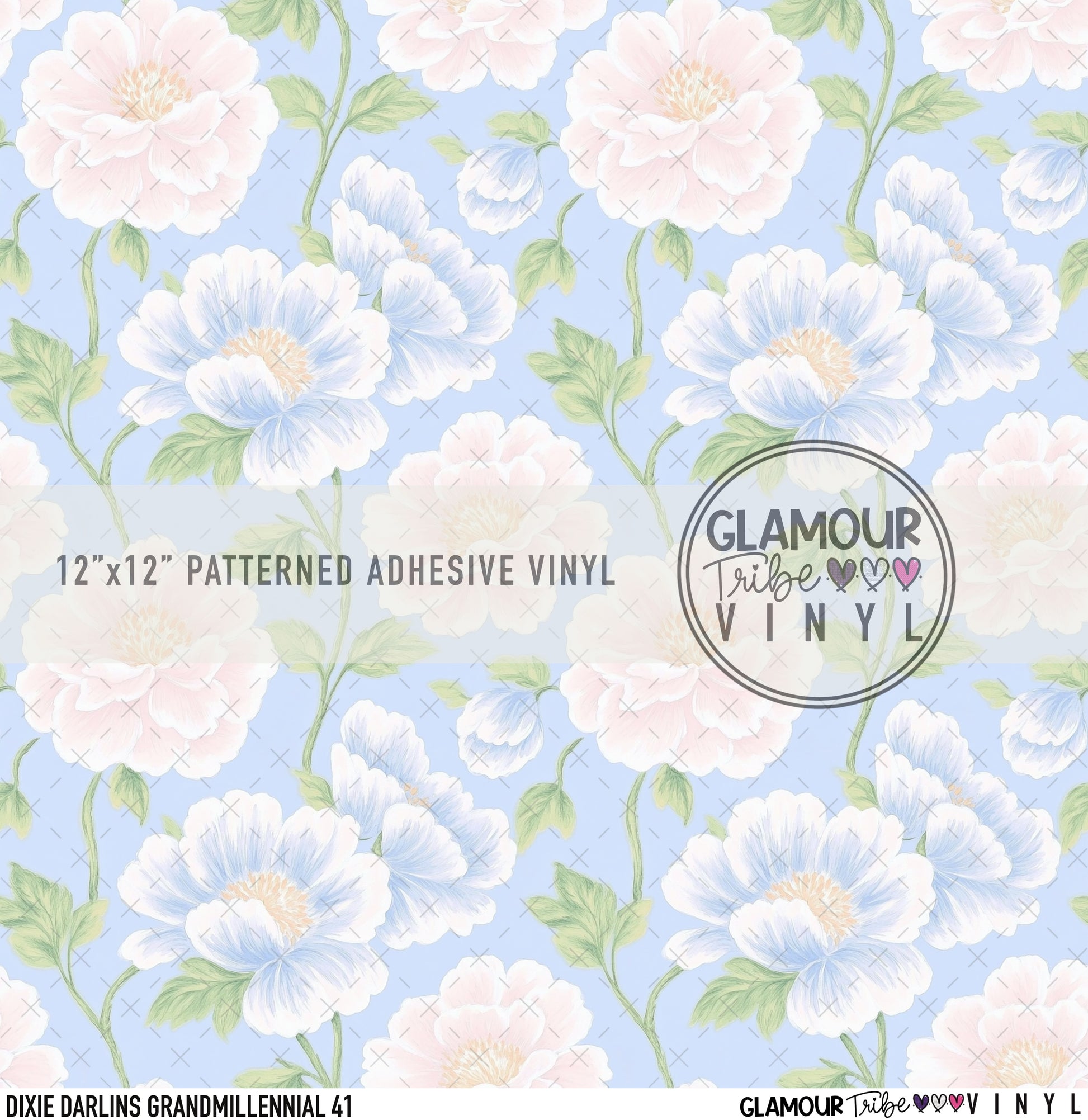 12"x12" sheet fully opaque pattern printed on white adhesive vinyl. See our available vinyl type options below, along with their descriptions. Usable, printed area of the print is a full 12"x12".