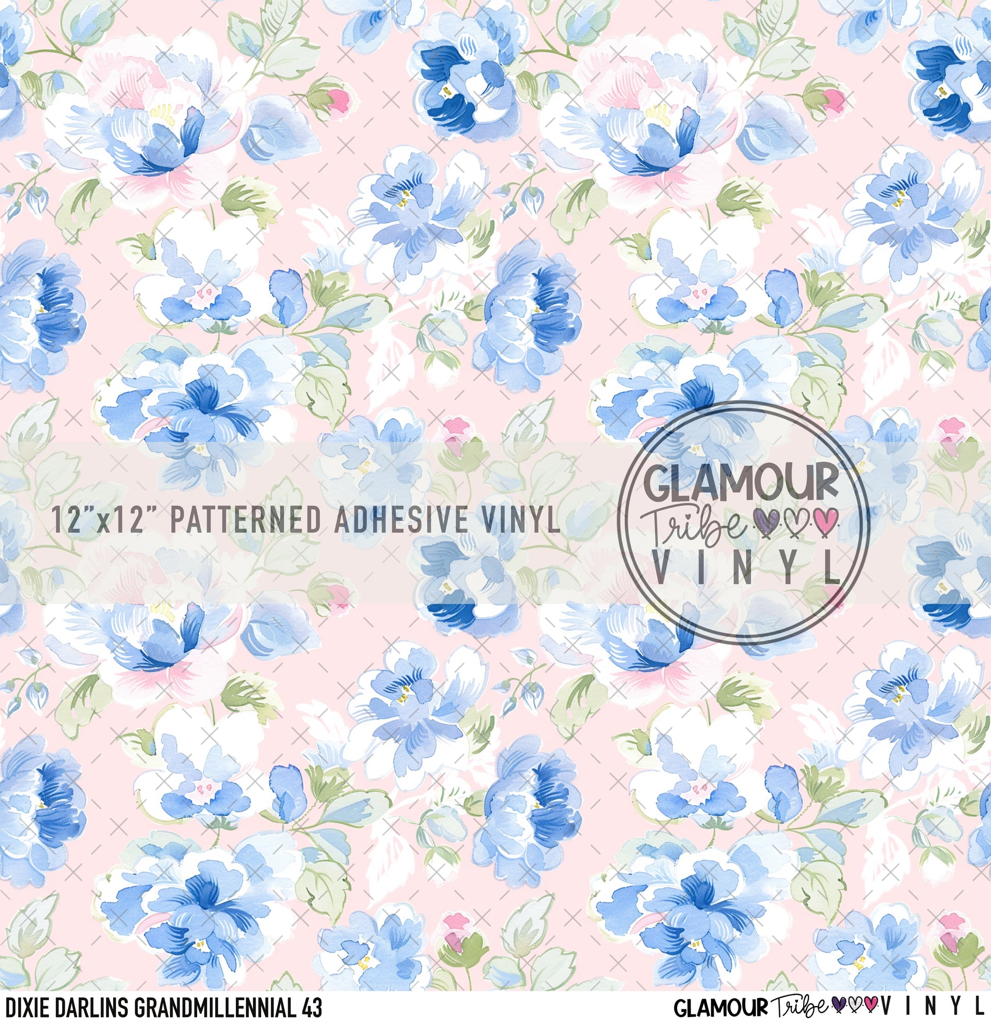 12"x12" sheet fully opaque pattern printed on white adhesive vinyl. See our available vinyl type options below, along with their descriptions. Usable, printed area of the print is a full 12"x12".