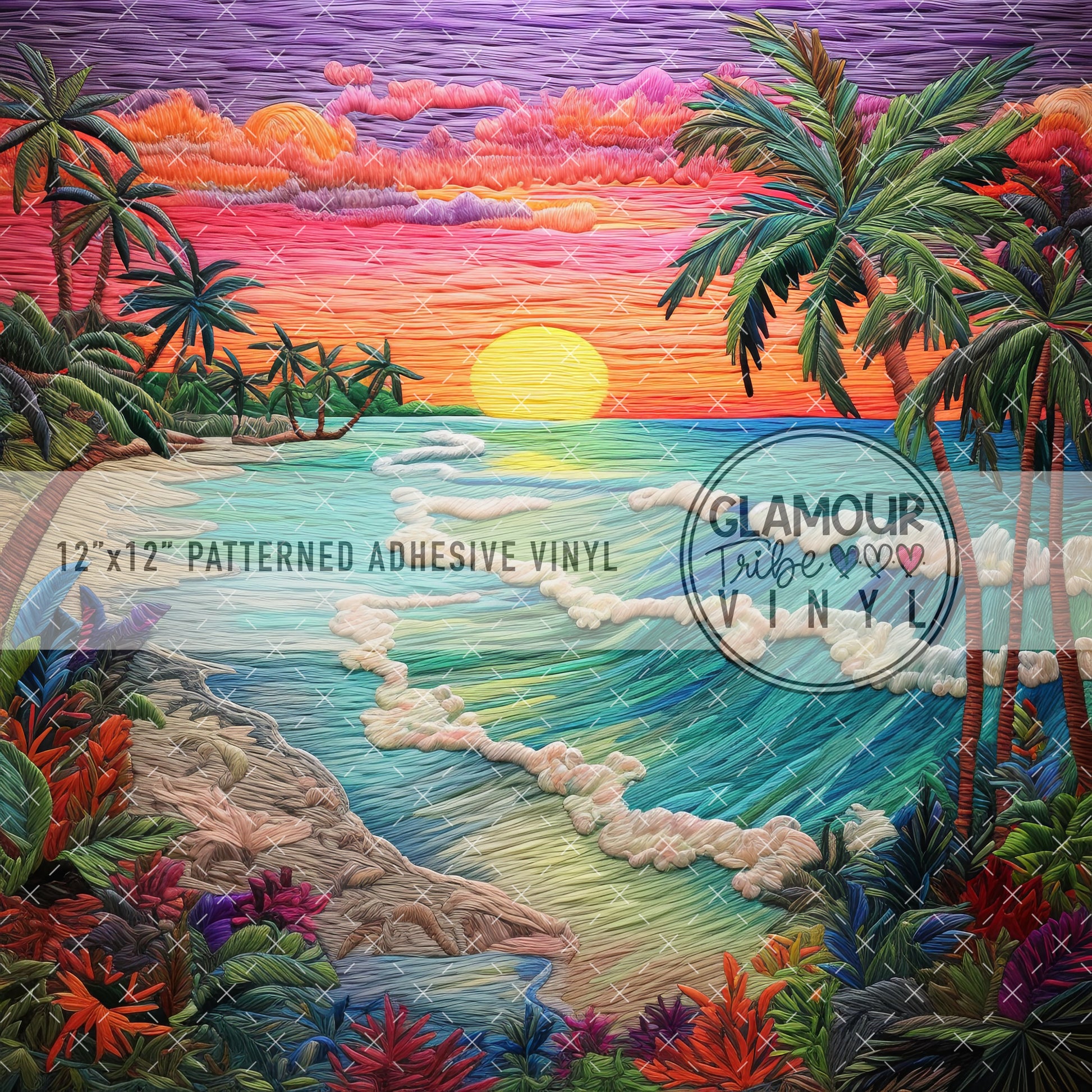 12"x12" sheet fully opaque pattern printed on white adhesive vinyl. See our available vinyl type options below, along with their descriptions. Usable, printed area of the print is a full 12"x12".