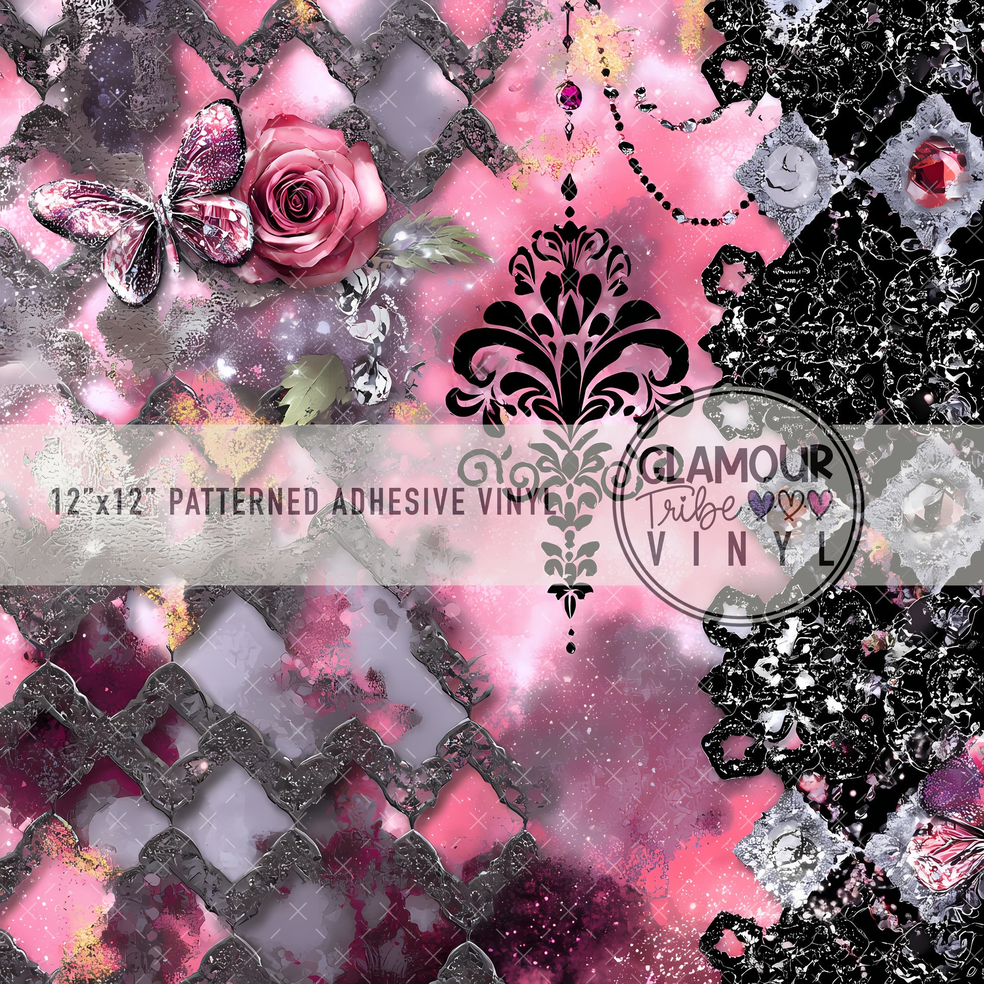 12"x12" sheet fully opaque pattern printed on white adhesive vinyl. See our available vinyl type options below, along with their descriptions. Usable, printed area of the print is a full 12"x12".