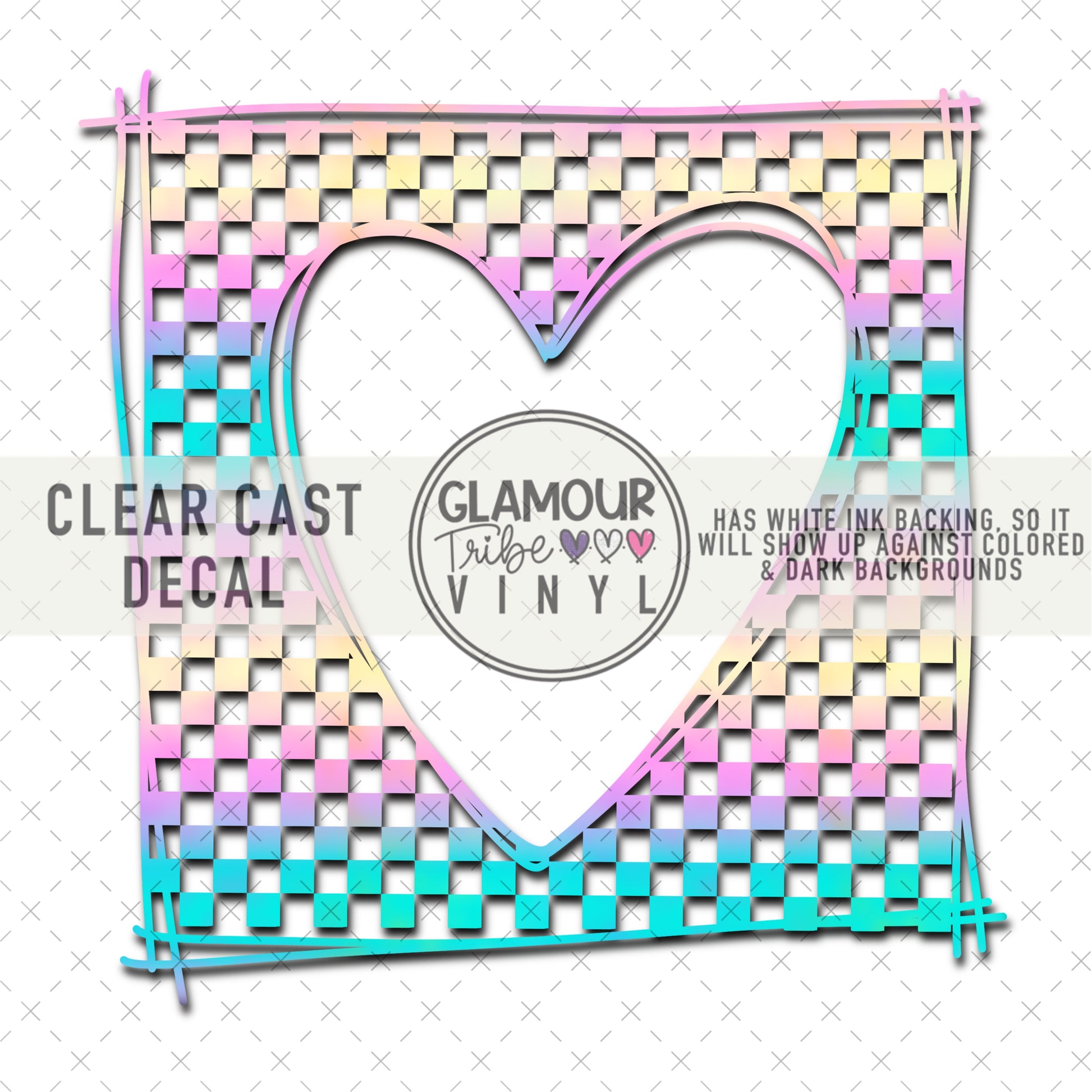 Clear Cast Decals are printed on clear vinyl, with a white ink base layer underneath the design, so that they can be used on any color background, even dark backgrounds.