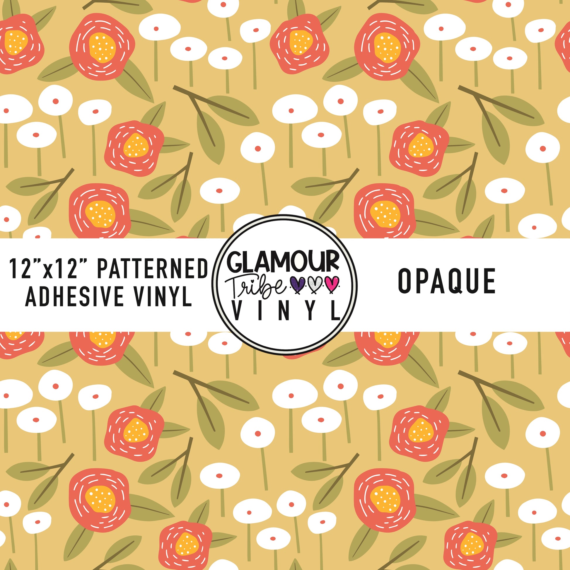 12"x12" sheet fully opaque pattern printed on white adhesive vinyl. See our available vinyl type options below, along with their descriptions. Usable, printed area of the print is a full 12"x12".