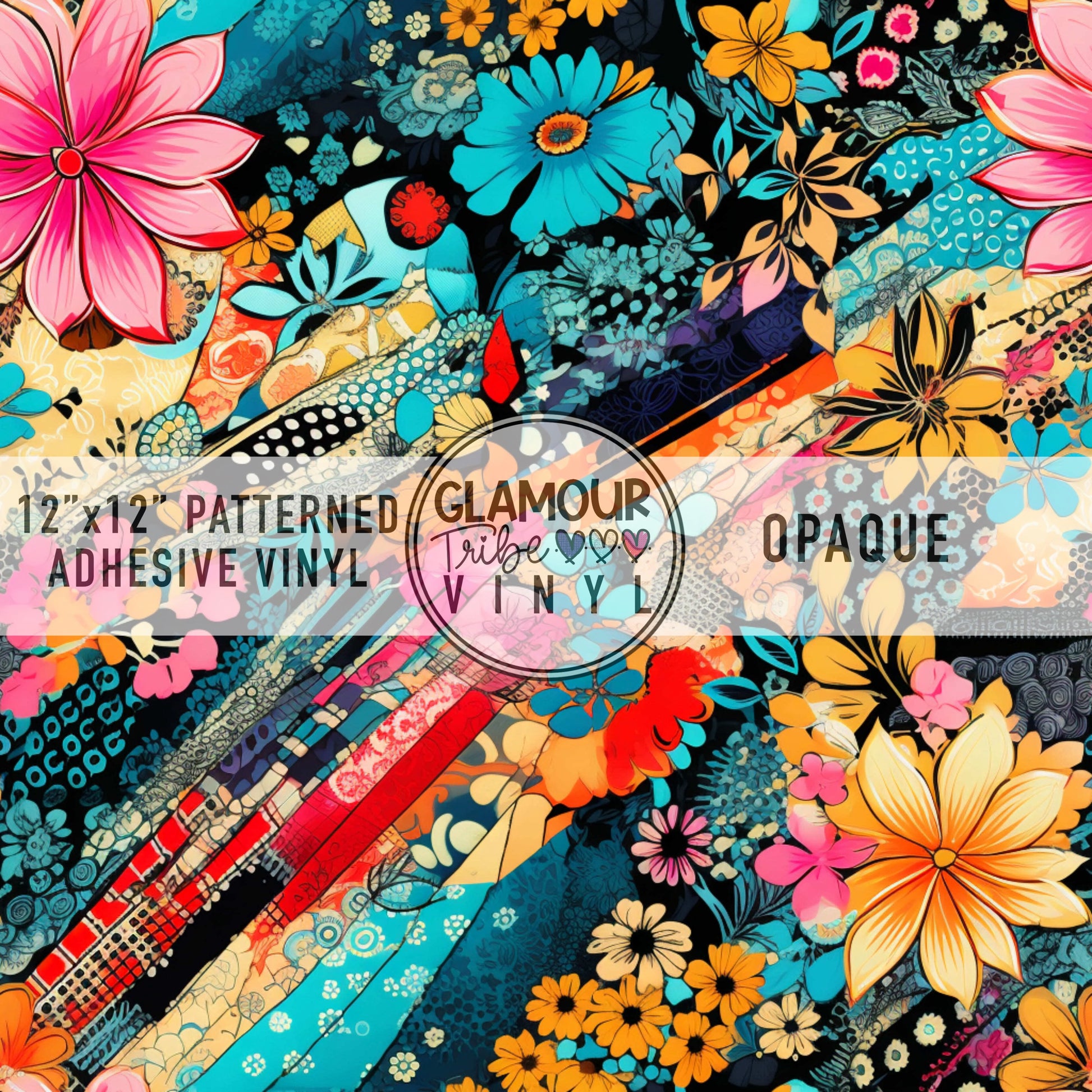 12"x12" sheet fully opaque pattern printed on white adhesive vinyl. See our available vinyl type options below, along with their descriptions. Usable, printed area of the print is a full 12"x12".