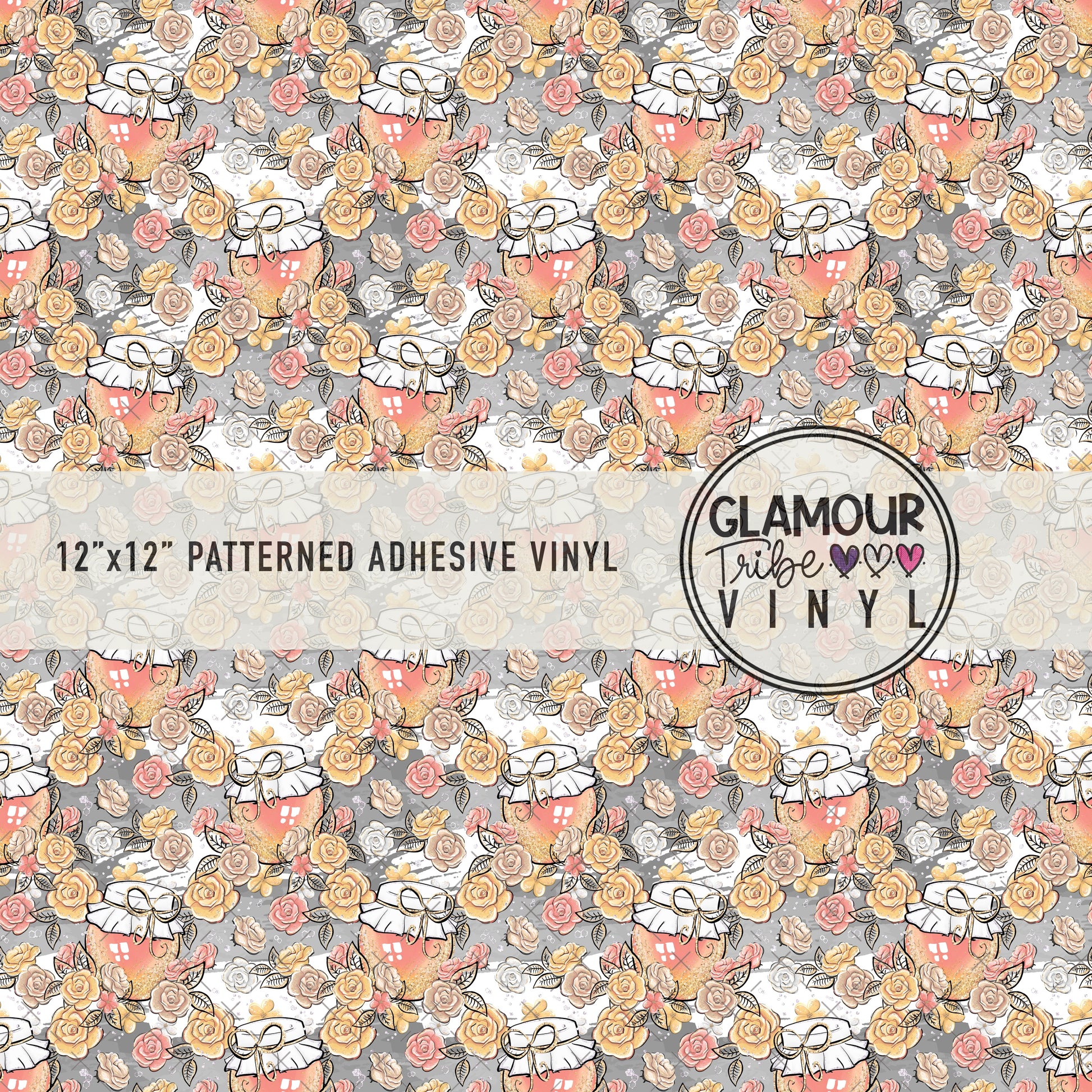 12"x12" sheet fully opaque pattern printed on white adhesive vinyl. See our available vinyl type options below, along with their descriptions. Usable, printed area of the print is a full 12"x12".
