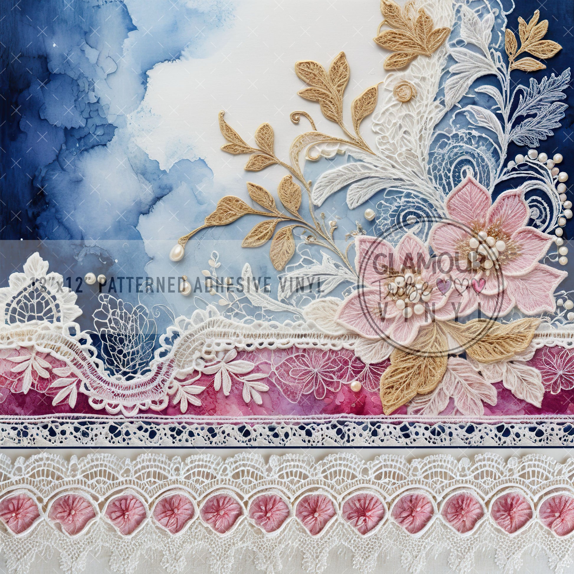 12"x12" sheet fully opaque pattern printed on white adhesive vinyl. See our available vinyl type options below, along with their descriptions. Usable, printed area of the print is a full 12"x12".