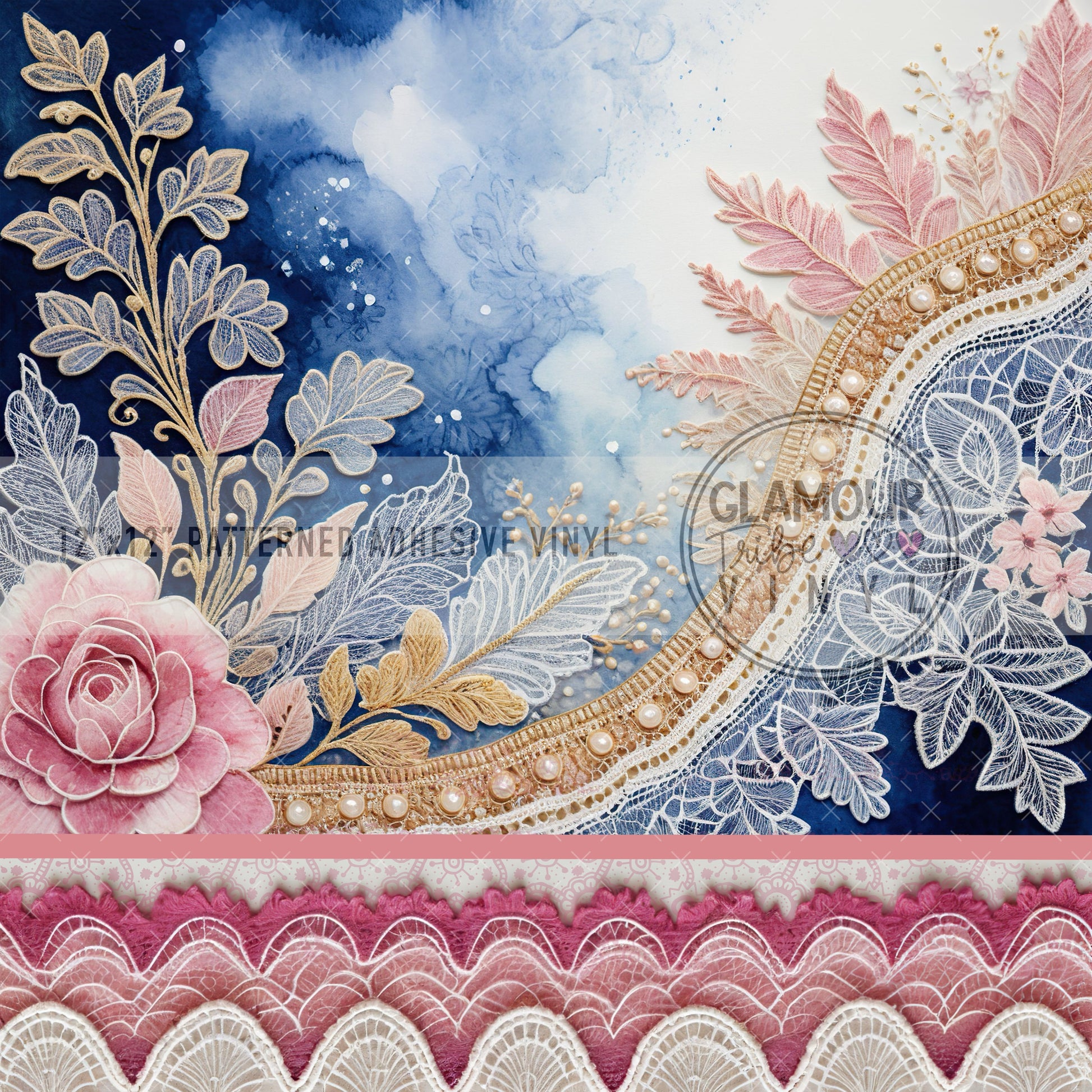 12"x12" sheet fully opaque pattern printed on white adhesive vinyl. See our available vinyl type options below, along with their descriptions. Usable, printed area of the print is a full 12"x12".