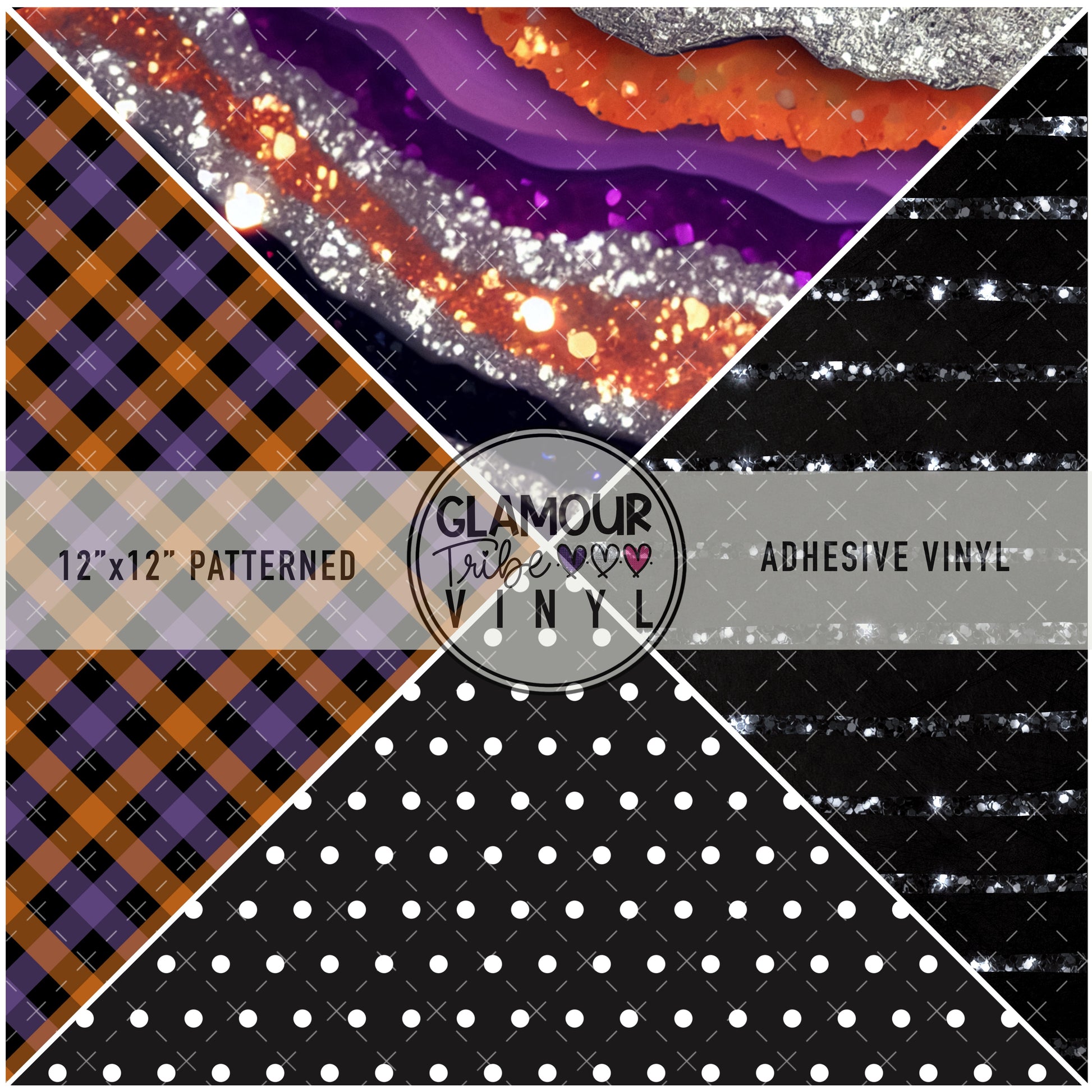 12"x12" sheet fully opaque patterns printed on white adhesive vinyl. Four coordinating patterns for v-split tumbler designs. See our available vinyl type options below, along with their descriptions. Usable, printed area of the print is a full 12"x12".