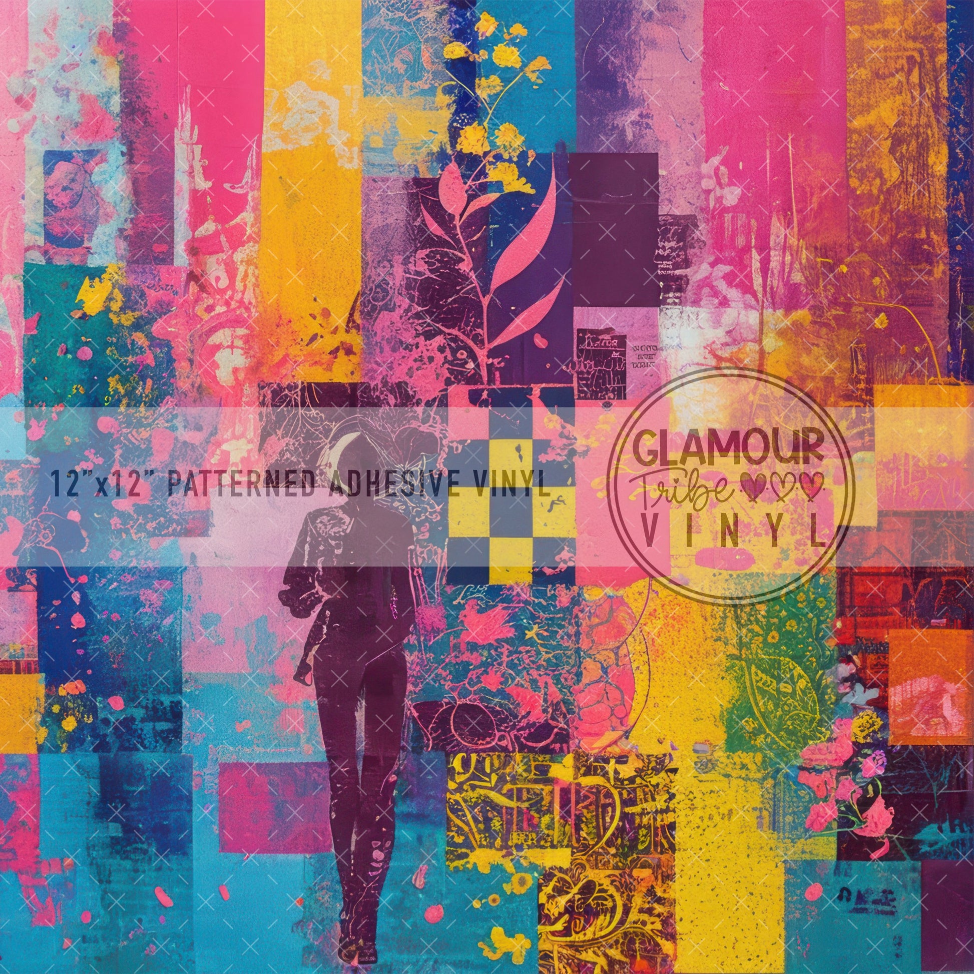 12"x12" sheet fully opaque pattern printed on white adhesive vinyl. See our available vinyl type options below, along with their descriptions. Usable, printed area of the print is a full 12"x12".