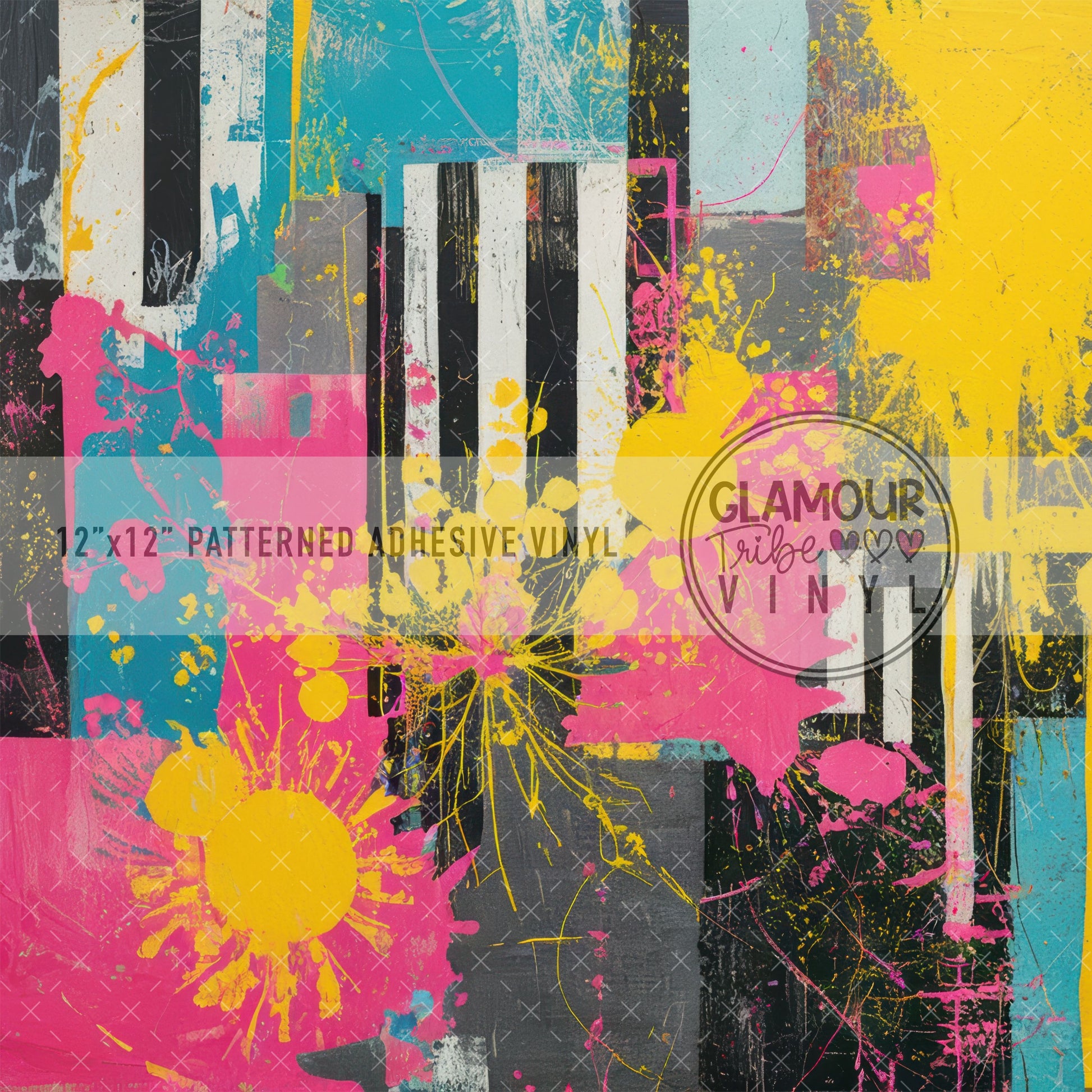 12"x12" sheet fully opaque pattern printed on white adhesive vinyl. See our available vinyl type options below, along with their descriptions. Usable, printed area of the print is a full 12"x12".