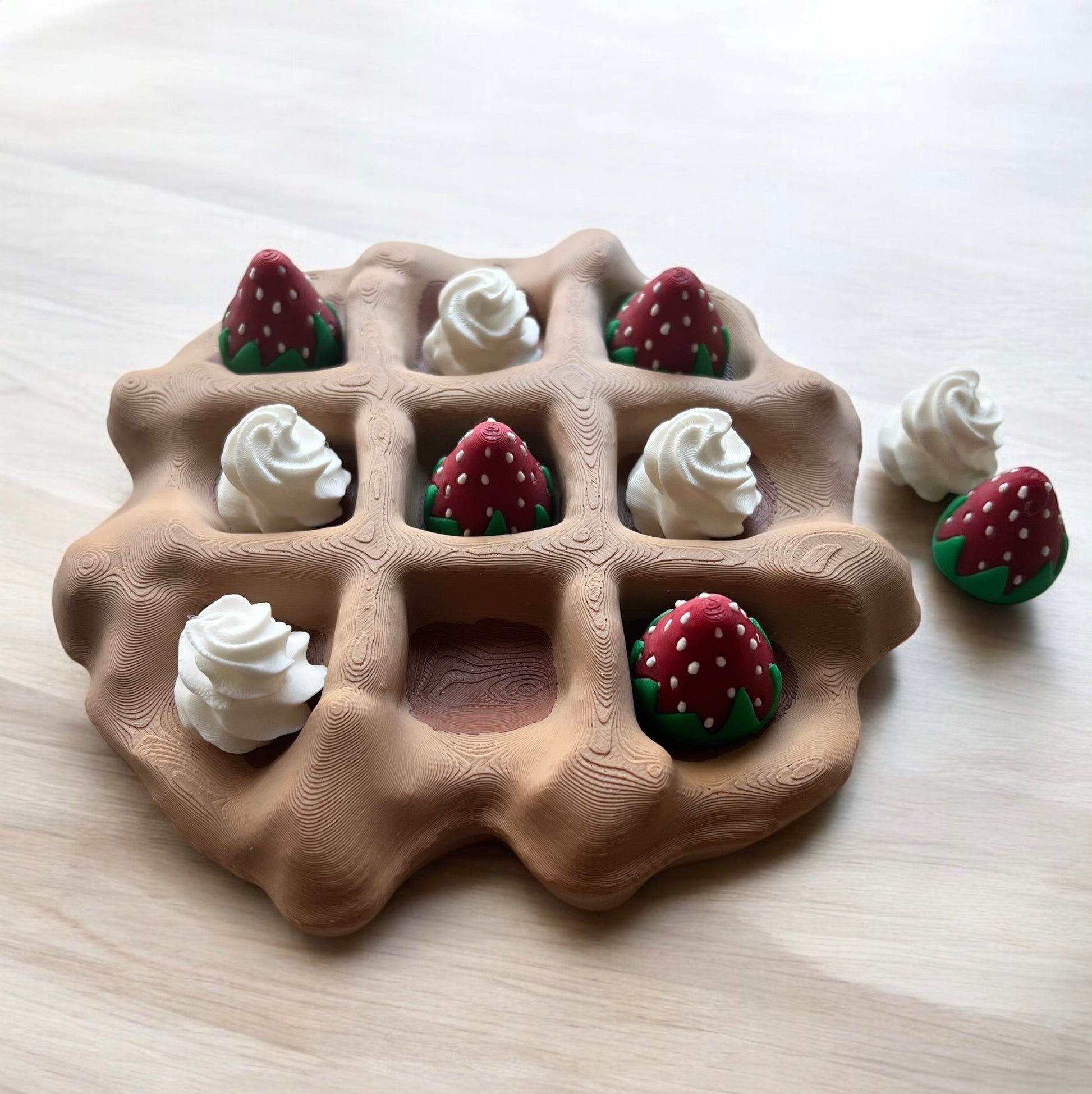 This 3D-printed tic-tac-toe set is waffle-themed and absolutely adorable. Its grid design is cleverly shaped like a waffle with syrup, and the playing pieces are strawberries and whipped cream. Great for any coffee table or desk, this set is sure to get people talking. The waffle is about 6"x6".