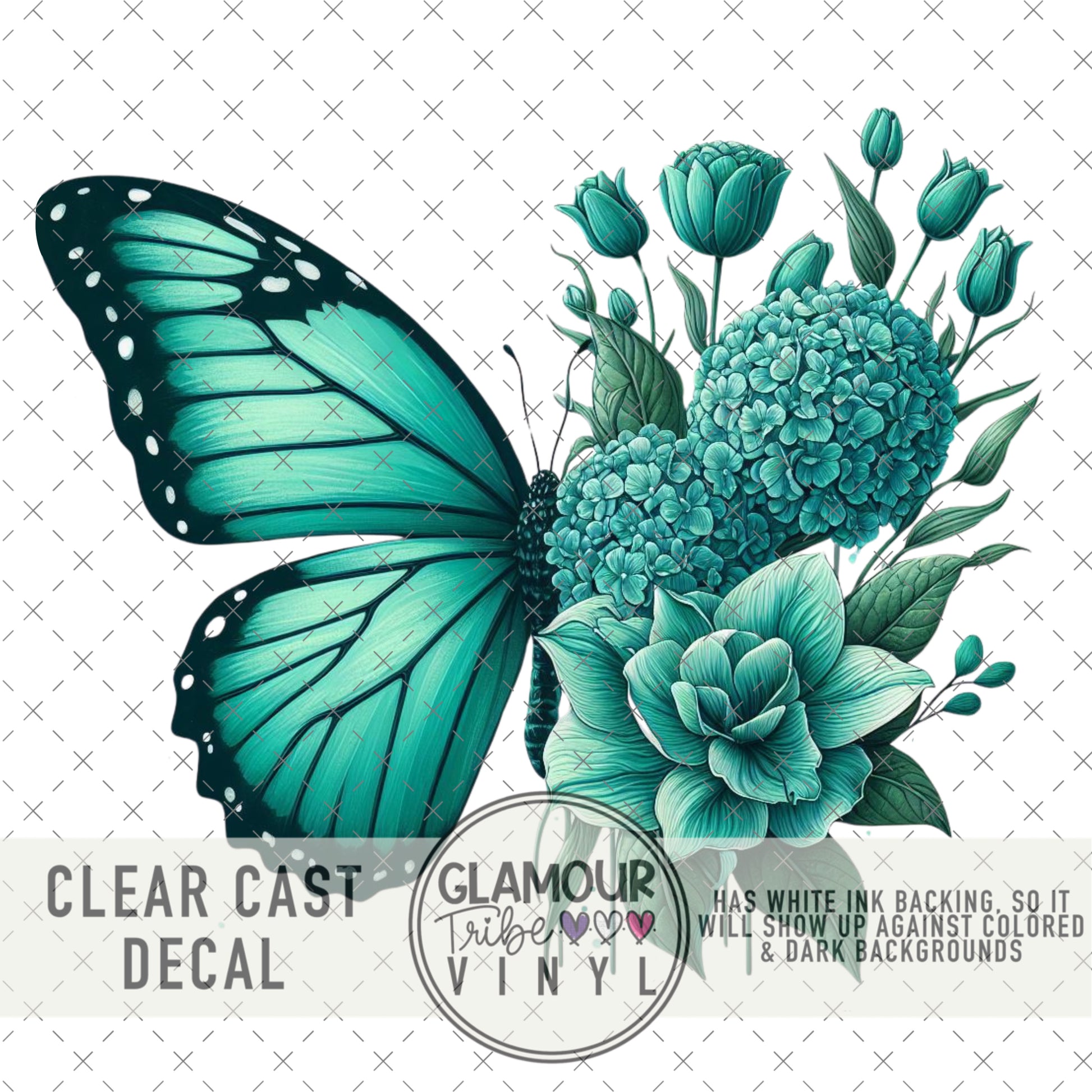 Clear Cast Decals are printed on clear vinyl, with a white ink base layer underneath the design, so that they can be used on any color background, even dark backgrounds.