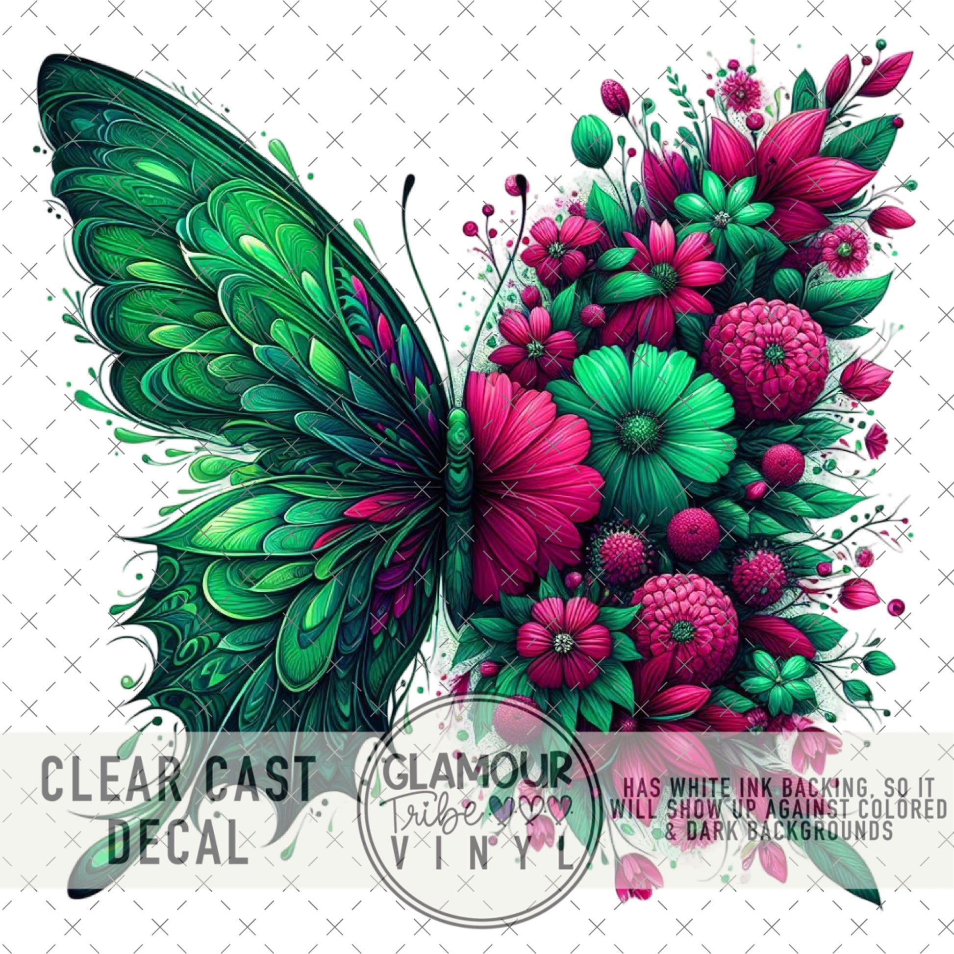 Clear Cast Decals are printed on clear vinyl, with a white ink base layer underneath the design, so that they can be used on any color background, even dark backgrounds.
