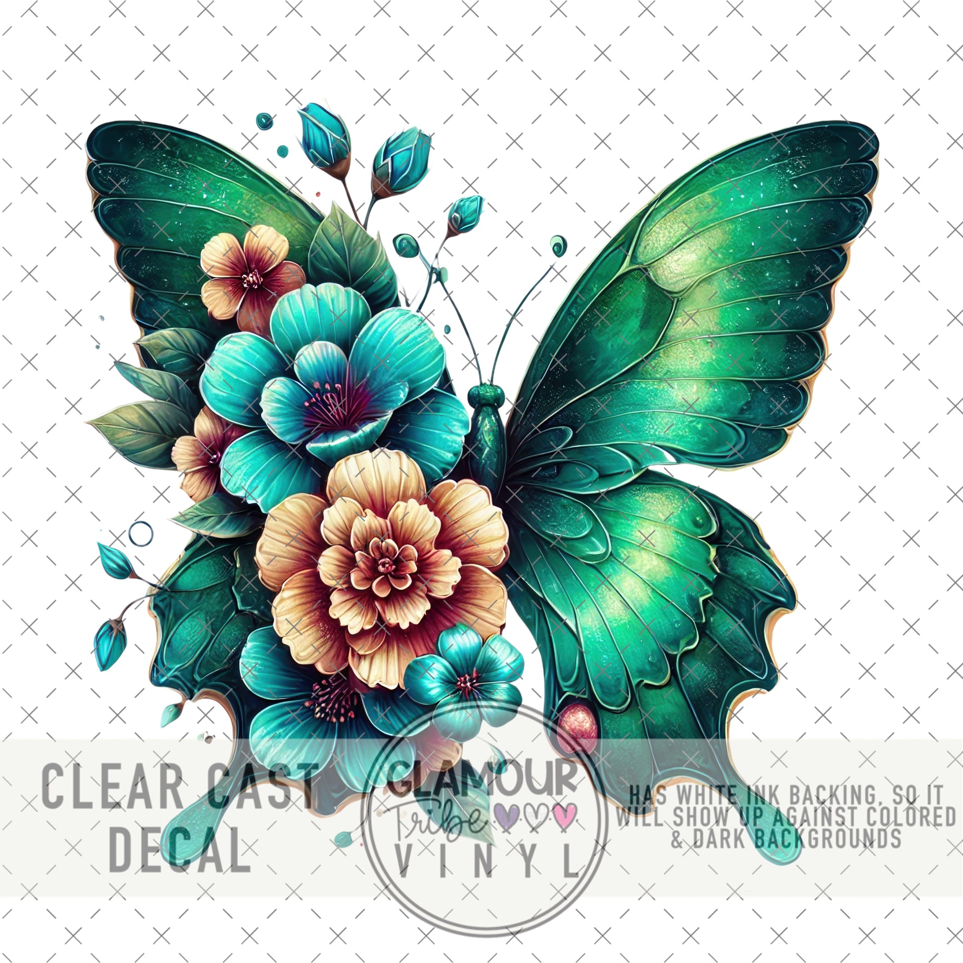 Clear Cast Decals are printed on clear vinyl, with a white ink base layer underneath the design, so that they can be used on any color background, even dark backgrounds.