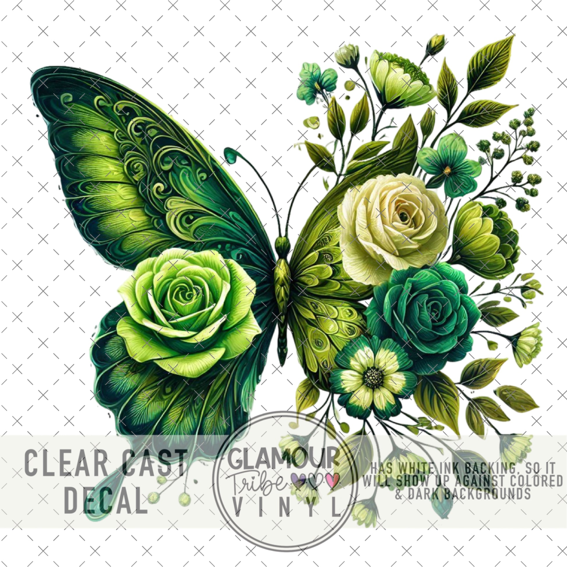 Clear Cast Decals are printed on clear vinyl, with a white ink base layer underneath the design, so that they can be used on any color background, even dark backgrounds.