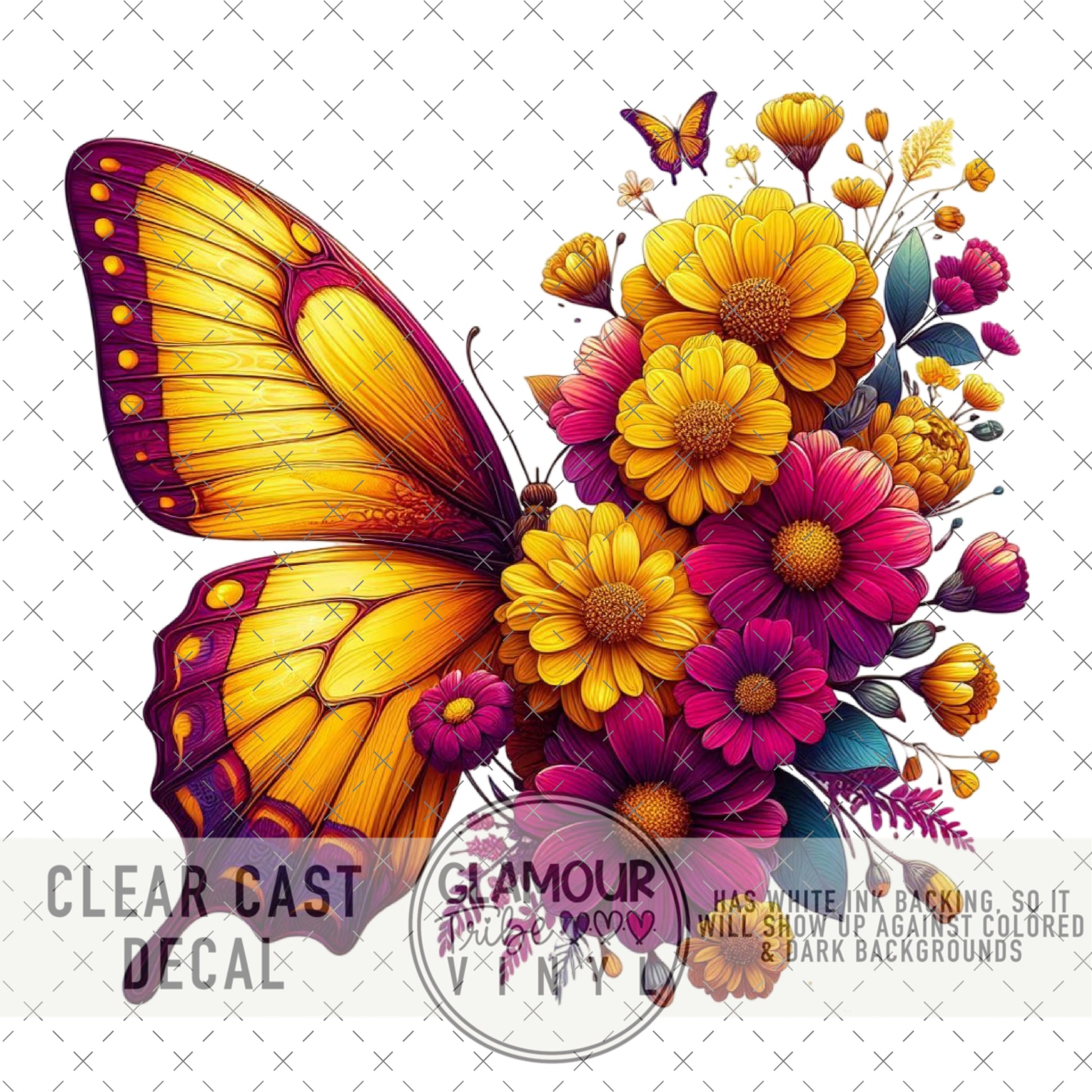 Clear Cast Decals are printed on clear vinyl, with a white ink base layer underneath the design, so that they can be used on any color background, even dark backgrounds.
