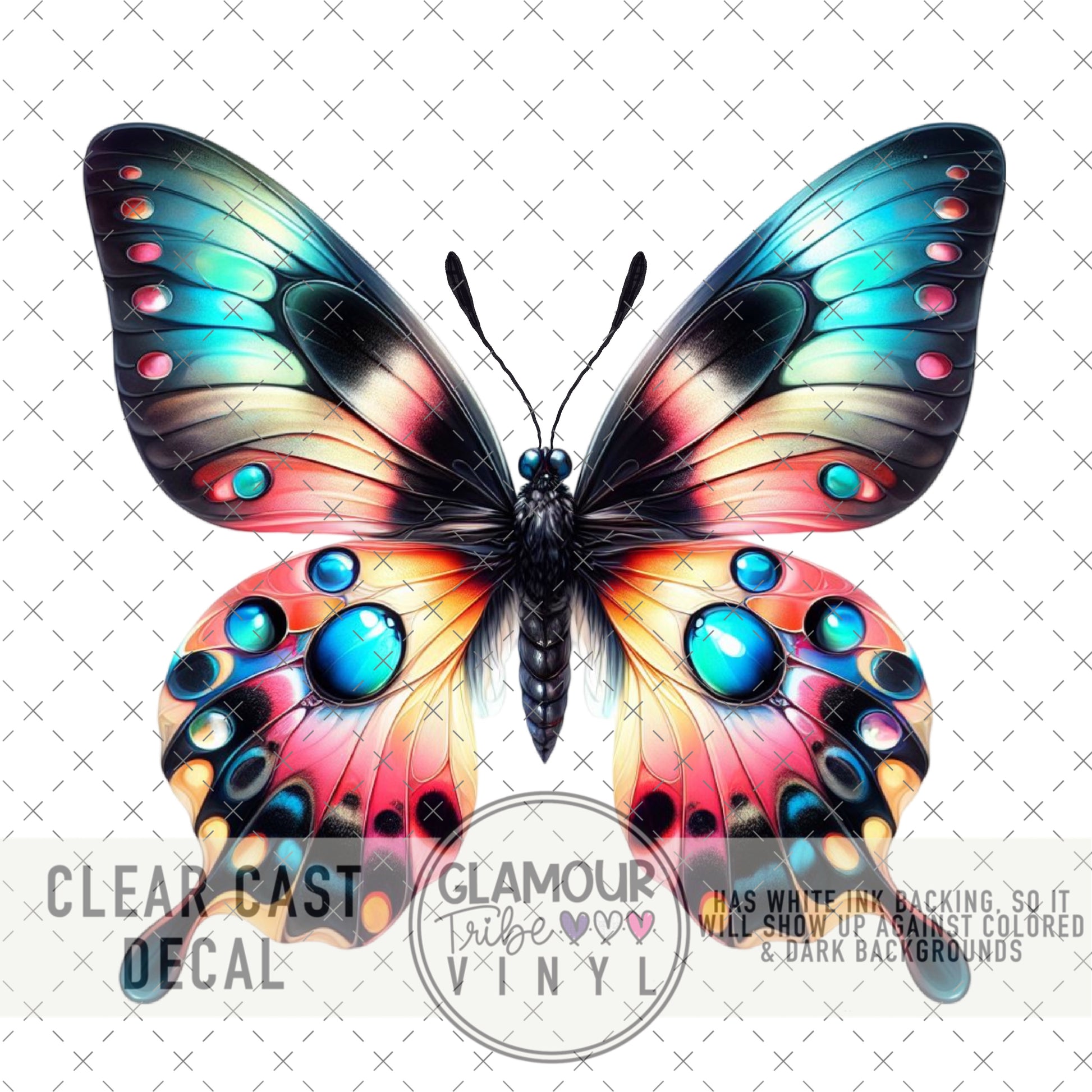 Clear Cast Decals are printed on clear vinyl, with a white ink base layer underneath the design, so that they can be used on any color background, even dark backgrounds.